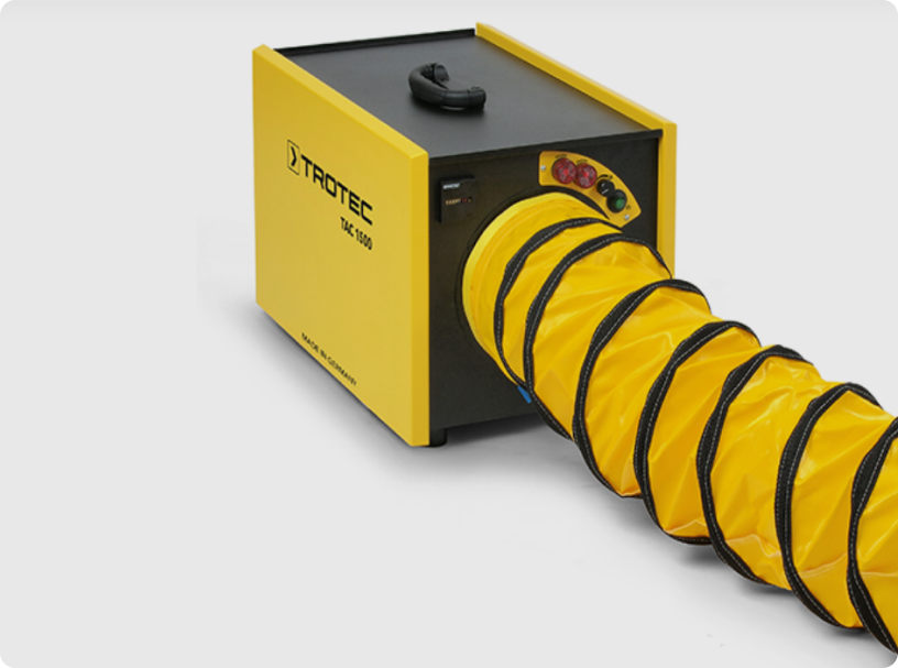 The Trotec professional air cleaners of the TAC series are perfect for air extraction and cleaning in contaminated workspaces. These portable devices with robust metal housing are designed for the tough conditions of construction sites and offer adjustable air volume for various applications.