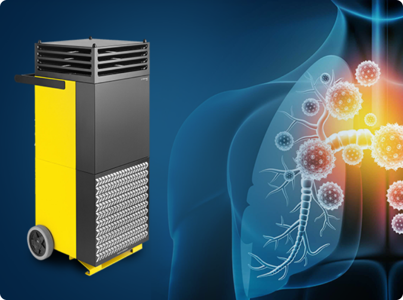 The Trotec TAC V+ mobile high-frequency air cleaner creates a clean zone with virus-filtered air, keeping ambient air largely free of germs and viruses. It features H14 HEPA filtration, retaining 99.995% of aerosol particles larger than 0.1 μm.